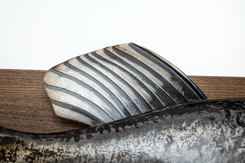 Сложная фактура чешуи и плавников, достигнутая благодаря патинированию, а также посредством огненного обжига, создаёт иллюзию только что выловленного из воды трофея. Каждая деталь, от острых зубов до мощного хвоста, проработана с доскональной точностью, раскрывая богатое воображение художника, видящего окружающий мир через призму артистического восприятия.