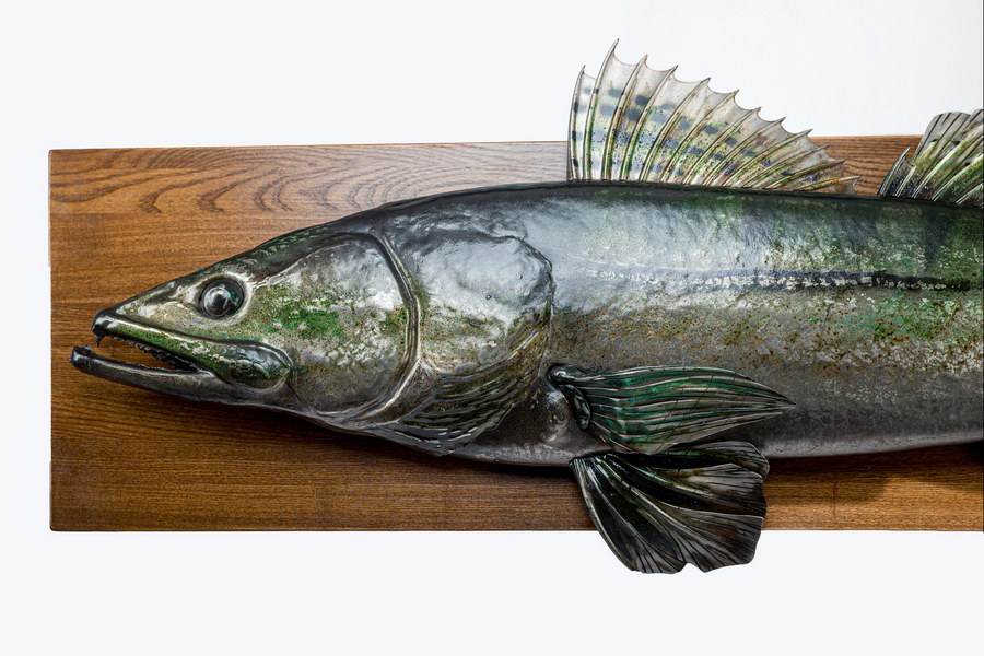Судак авторства художника Виталия Смыслова — это исследование скульптурного объёма и текстуры. Мастер виртуозно обыгрывает природный прототип, чтобы продемонстрировать богатые возможности металла. Вместо мимолетного движения здесь ценится устойчивость и конструктивная ясность, где мельчайшие детали изделия подчинены общей монументальной идее о спокойной мощи обитателя глубин.